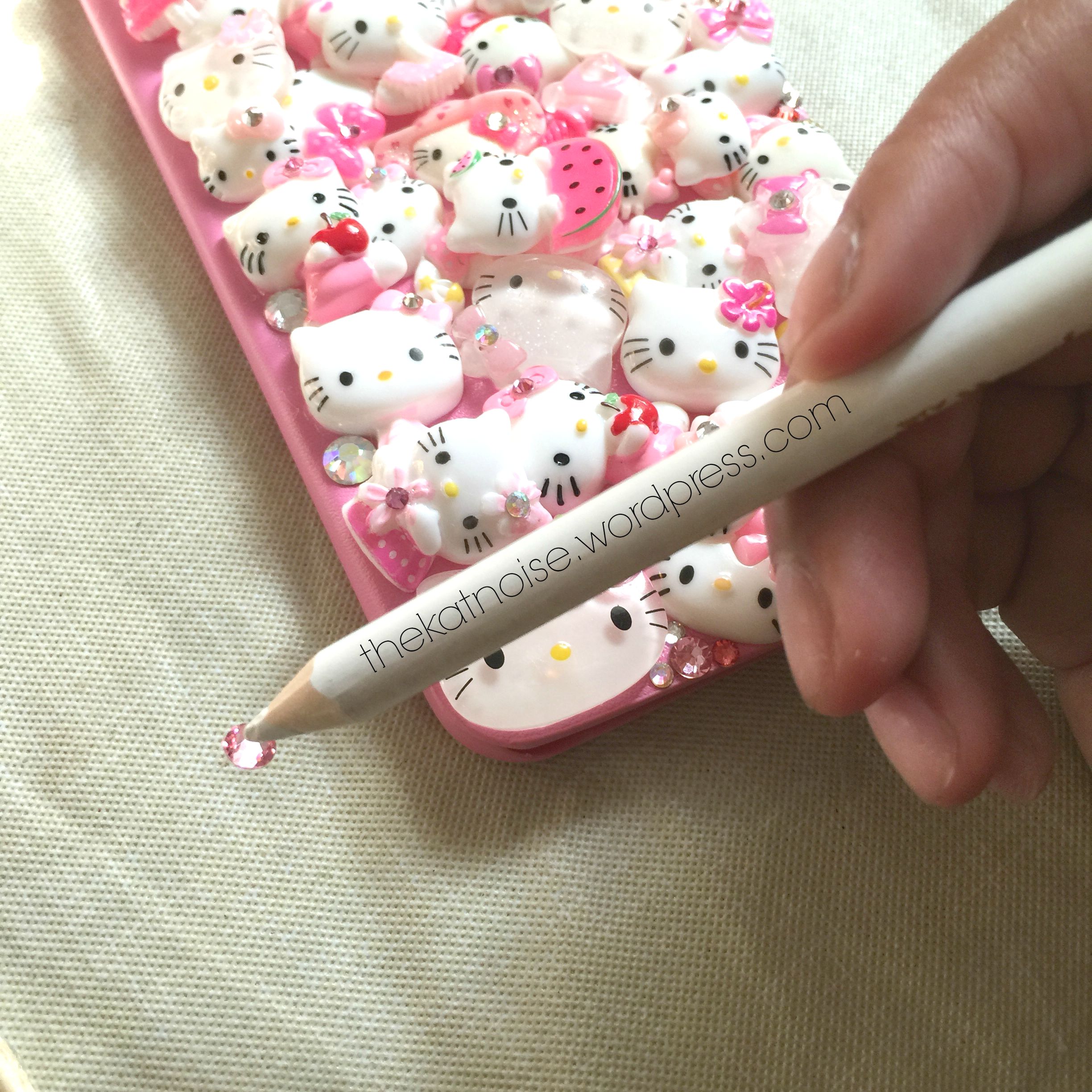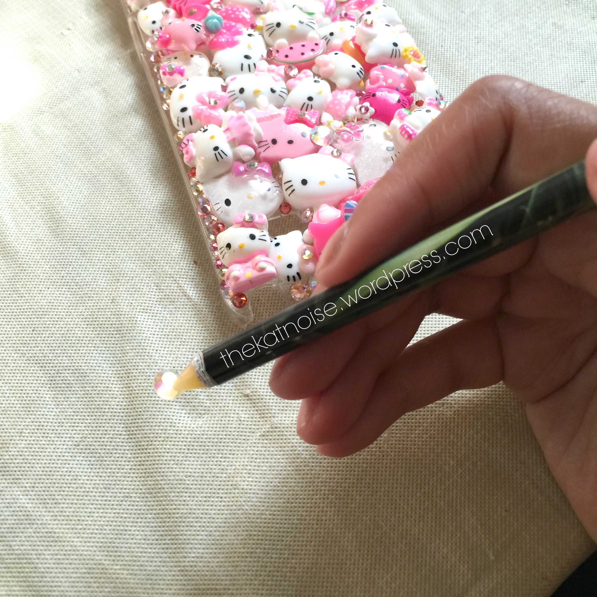 As I began to apply rhinestones, I was pleasantly surprised. I was expecting this pencil to leave residue. The rhinestone guy said it was an inferior tool compared to the one I was buying, Embellie Gellie. Minimal pressure was applied and easily grasped the rhinestones. If it did leave minimal residue, it was easily clean with my finger or paper towel. One thing that was a little bit cumbersome was it’s size. This pencil is a good inch or two longer than a regular #2 pencil. If I was really concentrating on gem placement, I’d goose myself. lol. I suppose you could cut it in half.